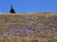 Przede wszystkim jednak dziko rosnący „fioletowy dywan” to wyższe partie gór: okolice Rycerzowej, Krawców Wierchu, Hali Miziowej, rozmaitych innych hal. Wyróżnia się tutaj Hala Rysianka, która początkiem kwietnia, w przerwie między śniegami, też bywa mekką dla turystów, wędrujących w poszukiwaniu botanicznej wiosny. Od Doliny Chochołowskiej odróżnia ją możliwość dojazdu z różnych stron. Chroni to przed zatorami drogowymi i kłopotami z zaparkowaniem. Fakt, że dojścia są wytyczone szlakami na wysoko położoną halę (1194 m. n. p. m.), dostarczy powodu dla bardziej efektywnej rekreacji (nie po płaskim). W tym roku obszerne połacie hali zakwieciły się więc krokusami, a przybyli mogli nacieszyć nimi oczy. Była możliwość zrobienia ciekawych zdjęć na tle Babiej Góry, Pilska, słowackiej Fatry i innych kierunków, bez oczekiwania na swoją kolejkę lub przepychania się przez zatłoczone ścieżki.